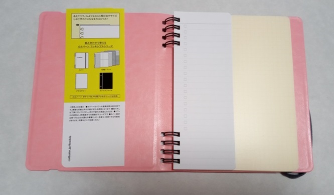 100円ショップで売っているリフィルも挟めるかな、と一瞬頭をよぎりましたが、あまり薄い紙だとリングに負けてしまいそうです。